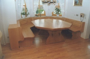|  | | |  | | | Eckbank mit Kofferablage und Sprossenlehne aus Buchenholz massiv | | | Esszimmer-Sitzgruppe mit Integrierter Kachelofenbank aus Eichenholz massiv. | |