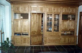 | | | | |  | | Wohnzimmerschrank in moderner zeitloser Form aus Buchenholz massiv | | | | | Raumteilender Schrank zwischen Wohn - und Schlafzimmer mit Türdurchgang in Eiche Rustikal mit Schnitzereien