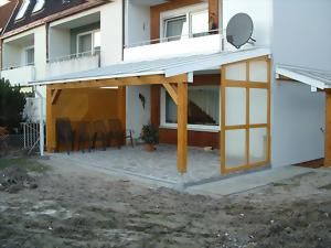 Terrassenüberdachung mit VSG - Sicherheitsglas 8 mm stark. Glas-Befestigung aus Wartungsfreien Aluminiumprofile. Holzkonstruktion mit Leimholz