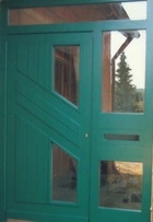 | | | Zimmertüre mit Verglasung in Buche leicht gedämpft. | Zimmertüre mit Designverglasung in Canad. Ahornholz, Kirschbaumfarbig gebeizt. |